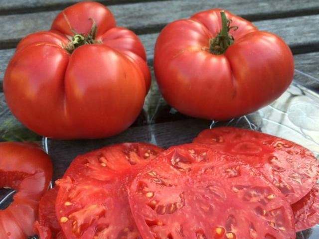 Appearance: Beefsteak tomatoes tend to have larger fruits, measuring 3 to 4 inches or more in diameter. Beefsteak tomatoes are flatter and slightly heart-shaped than regular round tomatoes, and are sometimes described figuratively as "beef hearts."