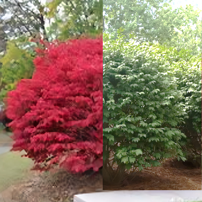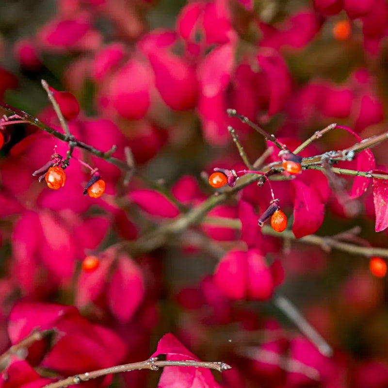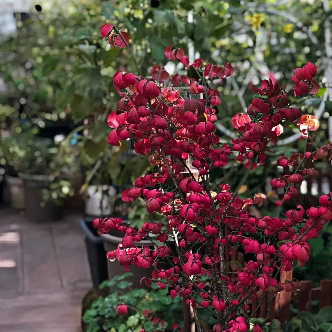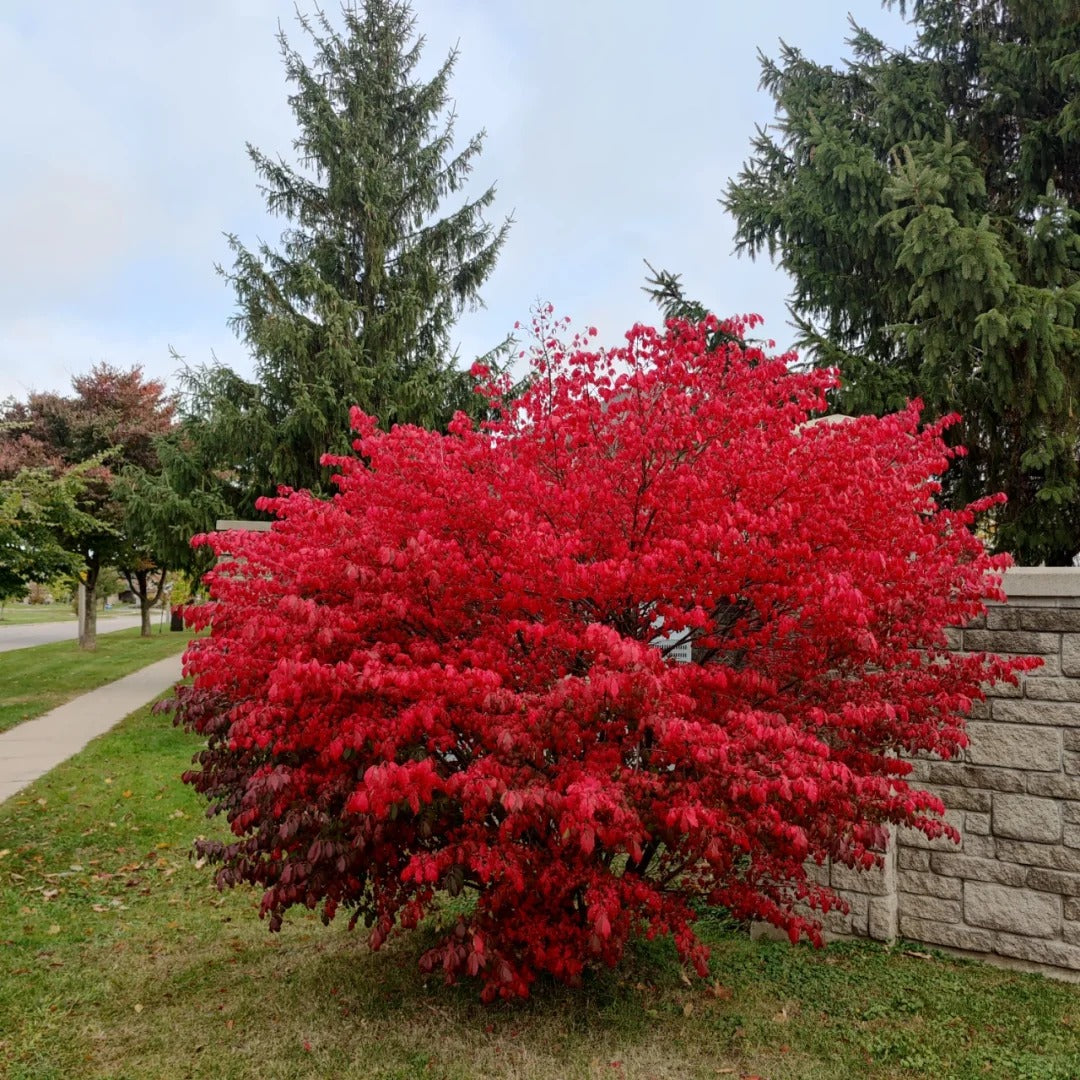 1. Brilliant Autumn Color 🍁🔥 The Burning Bush is famous for its fiery red foliage in the fall. As temperatures cool, its deep green leaves transform into a blaze of red, creating a spectacular display that lights up any garden. This bold color makes it a fantastic choice for adding autumn interest to your landscape. 🍂🍷