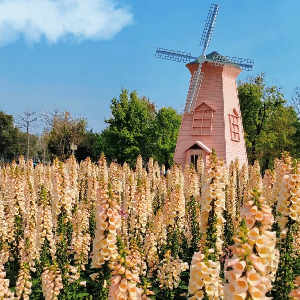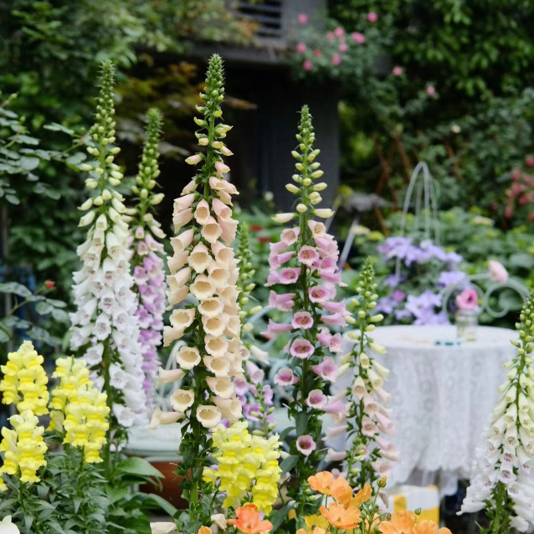 Flowers: Foxglove flowers are bell-shaped, often with one side sloping downward. Various colors, including purple, apricot, white and so on. The flowers bloom in the summer and are very attractive to bees and butterflies.