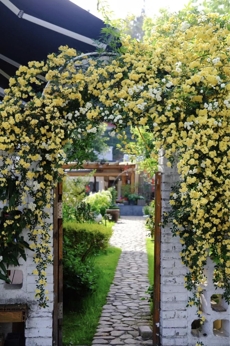 Yellow Banks Rose is often used in garden flower stands, or climbing fences, or made into flower arches, all of which are excellent three-dimensional greening plants.
