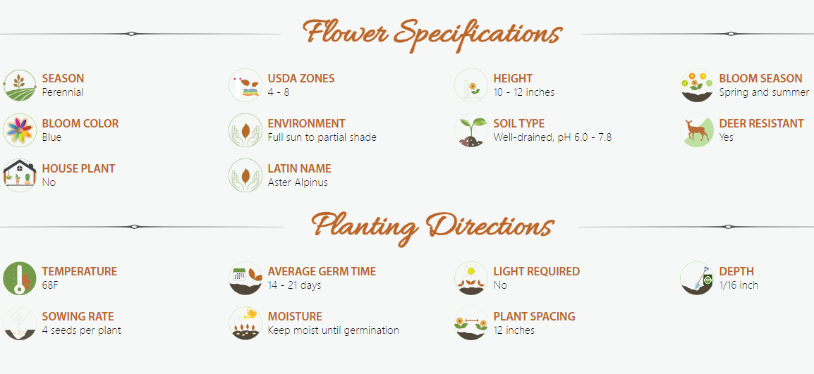 Sow Aster flower seed indoors in early spring using starter mix. Press flower seed into soil and barely cover. Transplant into the garden 12 inches apart. For areas with long growing season, Aster seeds can be started directly outdoors after frost danger has passed.