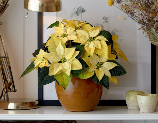 Temperature: Excessive heat will cause leaves to turn yellow and fall off, and flower buds to wither prematurely. Daytime temperatures should not exceed 70°F. Don't place your poinsettias near drafts, excessive heat, or dry air from appliances, fireplaces, or air ducts. Chilling damage is also a problem and can cause premature leaf drop if temperatures drop below 50°F.