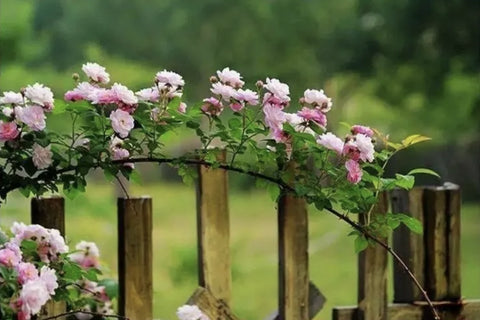 Rose bush roots are commonly referred to as non-invasive. Rose bushes are not known to displace foundations or water pipes.