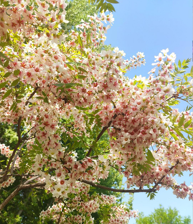 🎨🌺Xanthoceras sorbifolia is an ancient plant. As the blooming time progresses, the flowers will appear in different colors. They are white when they first open, then light green, then crimson, and finally smoky purple when in full bloom. The color is gradual. So you will see flowers blooming on a tree that seem to be the same but of different colors, giving people a fresh, pleasant, elegant and calm feeling. This is also the most attractive part of the Xanthoceras sorbifolia flower.